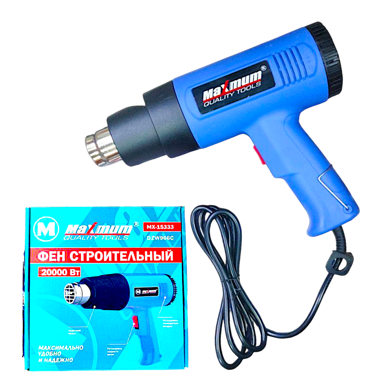 Фен строительный электрический от "Maximum Quality Tools" применяется для размягчения лакокрасочных покрытий, сушки стройматериалов и разморозки труб. Кроме того, может использоваться вместо сварочного аппарата для брезента, линолеума и других изделий из поливинилхлорида.