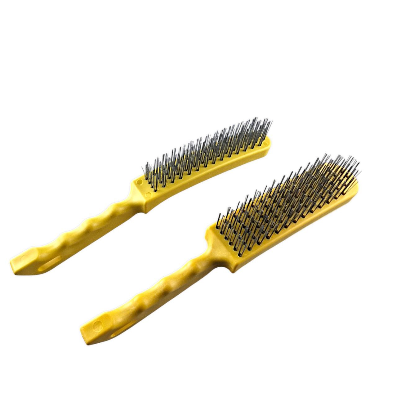 Ручная щетка с шестью рядами жёсткого металлического ворса — незаменимый инструмент для интенсивной очистки и обработки поверхностей. Она изготовлена из прочной стальной проволоки и ударопрочного пластика. Эргономичная ручка с отверстием для подвешивания обеспечивает удобный хват и компактное хранение. Общая длина щётки — 270 мм, длина жёсткого стального ворса — 25 мм.